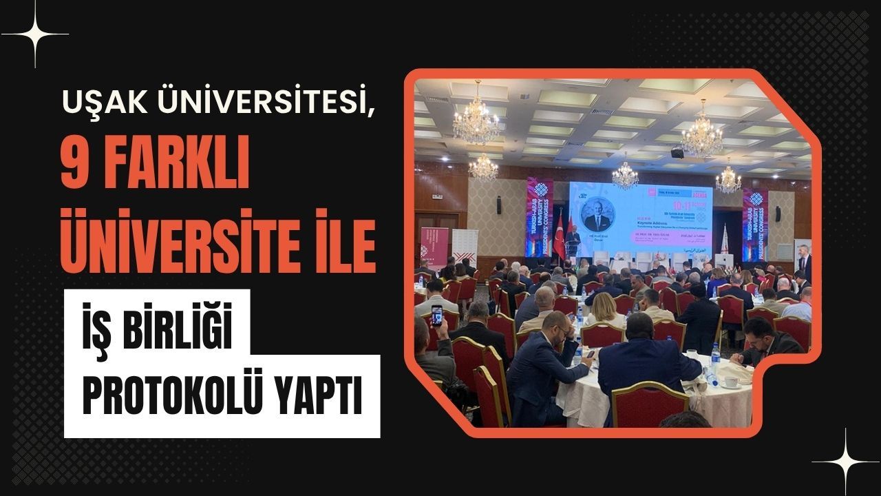 İkili iş birliğinin ön plana çıktığı görüşmede Uşak Üniversitesi ile Libya’daki AlJufra Üniversitesi ve Zawia Üniversitesi, Irak’taki Al-Kitab Üniversitesi ve Communication and Information Technology Üniversitesi, Sudan’da bulunan Alzaiem Alzhari Üniversitesi, Ürdün’deki Philadelphia Üniversitesi, Yemen’de bulunan Mahrah Üniversitesi, Birleşik Arap Emirliklerinde faaliyet gösteren Al Ain Üniversitesi ve Tunus’ta bulunan El Manar Üniversitesi ile iş birliği protokolü yapıldı.