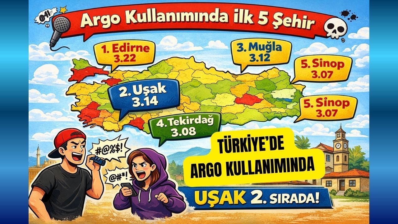 Türkiye genelinde yapılan dil kullanımı araştırması, dikkat çekici sonuçları ortaya koydu. Günlük konuşmalarda argo kullanım oranlarının incelendiği çalışmada, Uşak üst sıralarda yer aldı. Araştırmaya göre, argo kullanımında ilk sırada 3.22 ortalama ile Edirne bulunurken, Uşak 3.14 ortalama ile ikinci sıraya yerleşti. Listenin üçüncü sırasında 3.12 ile Muğla, dördüncü sırasında 3.08 ile Tekirdağ, beşinci sırasında ise 3.07 ortalama ile Sinop yer aldı. Elde edilen veriler, özellikle Ege ve Trakya bölgelerinde günlük dilde argo kullanımının daha yaygın olduğunu gösterdi. Uzmanlar, bu durumun bölgesel kültür, sosyal iletişim biçimleri ve günlük konuşma alışkanlıklarıyla yakından ilişkili olabileceğini belirtiyor.