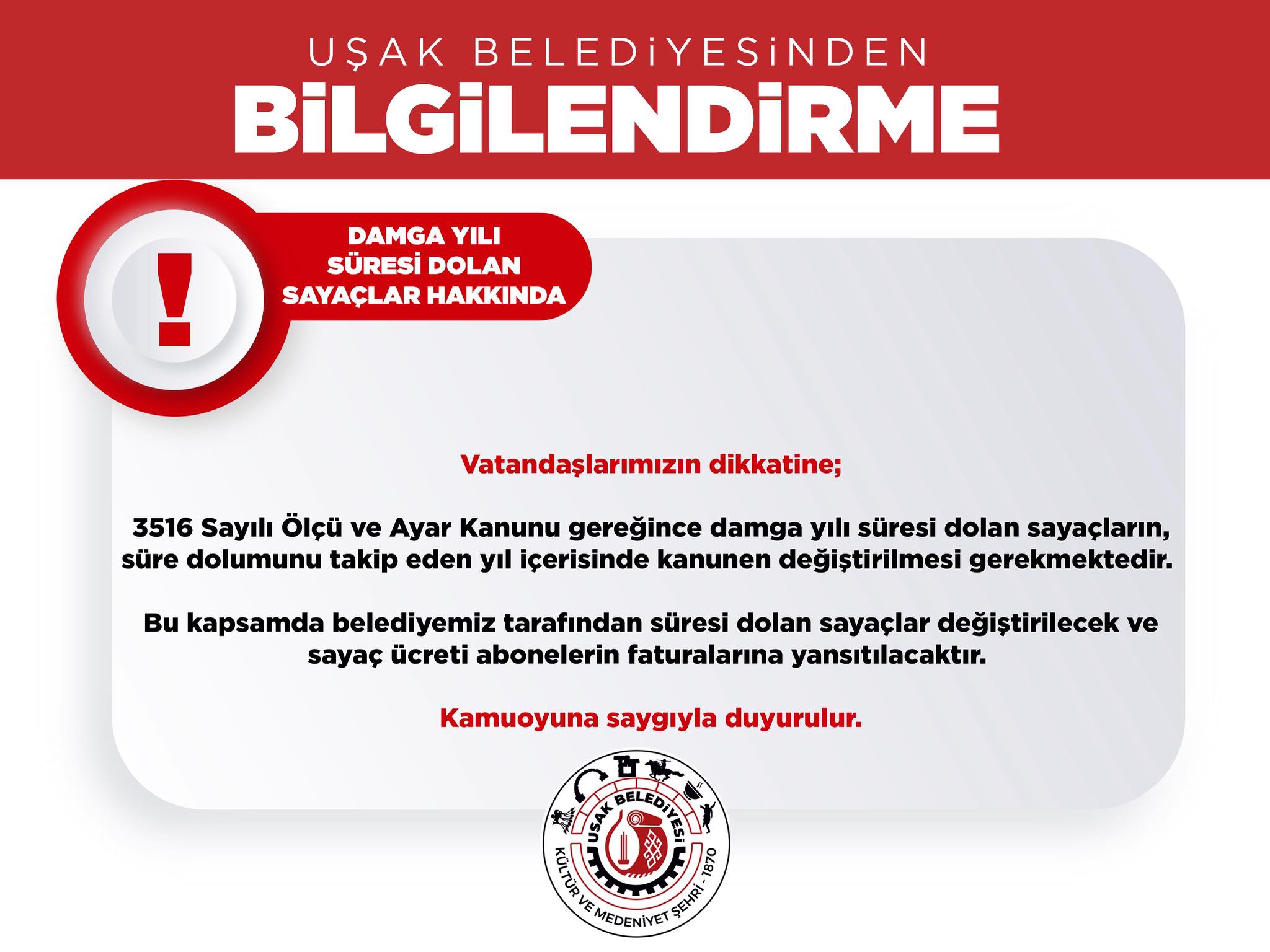Uşak Belediyesi, sayaç yenileme işlemlerinin tamamen kanuni çerçevede yürütüldüğünü hatırlatarak, vatandaşların bilgilendirmeyi dikkate almalarını istedi. Yapılan açıklama, “Kamuoyuna saygıyla duyurulur.” ifadeleriyle sonlandırıldı.