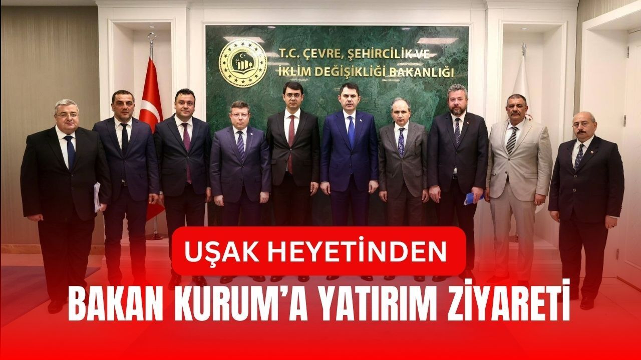 Uşak Valisi Serdar Kartal, AK Parti Uşak Milletvekilleri İsmail Güneş ve Fahrettin Tuğrul, Banaz Belediye Başkanı Zafer Arpacı, Sivaslı Belediye Başkanı Bahri Azatçam, Ulubey Belediye Başkanı Veli Koçlu, Sivaslı Tatar Belediye Başkanı Zafer Gün, Ulubey AK Parti İlçe Başkanı Hüseyin Çanak ile Uşak Çevre, Şehircilik ve İklim Değişikliği İl Müdürü Bülent Güngör’den oluşan heyet, Çevre, Şehircilik ve İklim Değişikliği Bakanı Murat Kurum’u ziyaret etti.