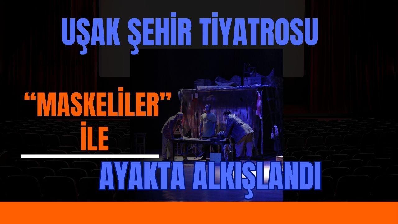 Uşak Belediyesi Kültür ve Sosyal İşler Müdürlüğü bünyesinde faaliyet gösteren Uşak Belediyesi Şehir Tiyatrosu, sahnelediği “Maskeliler” adlı oyunla tiyatroseverlere duygu yüklü bir gece yaşattı. Uşak Atatürk Kültür Merkezi’nde gerçekleşen gösterimde, insanlık, vicdan, savaş ve kimlik üzerine derin temalar işlenirken, oyuncuların performansları izleyicilerden büyük alkış aldı.