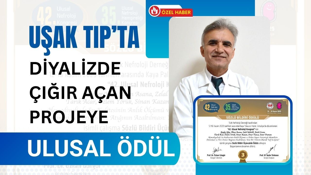 (ÖZEL HABER) - Uşak Üniversitesi Tıp Fakültesi, sağlık teknolojileri alanında dikkat çeken bir başarıya daha imza attı. İç Hastalıkları Anabilim Dalı Başkanı Prof. Dr. Ender Hür ve akademik ekibi tarafından geliştirilen, hemodiyaliz tedavisinde su kalitesini anlık olarak izleyen “Saf Su Gözü” projesi, 42. Ulusal Nefroloji Kongresi’nde Sözlü Bildiri Üçüncülük Ödülü’ne layık görüldü.