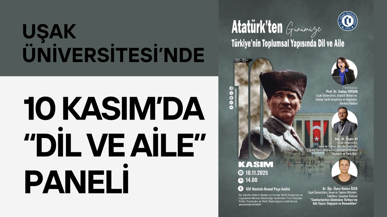Uşak Üniversitesi, 10 Kasım Atatürk’ü Anma Günü’nde anlamlı bir etkinliğe ev sahipliği yapacak. Atatürk İlkeleri ve İnkılap Tarihi Araştırma ve Uygulama Merkezi tarafından düzenlenen “Atatürk’ten Günümüze Türkiye’nin Toplumsal Yapısında Dil ve Aile” başlıklı panel, GSF Mustafa Kemal Paşa Amfisi’nde saat 14.00’te gerçekleştirilecek.