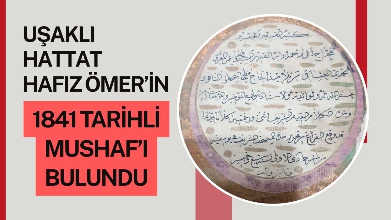 (ÖZEL HABER) - Uşak’ta 1841 tarihli Mushaf’ın ardındaki sessiz dua gün yüzüne çıktı. Uşaklı araştırmacı ve belgeselci Alp Arslan Dur, Uşak Kent Tarihi Müzesi’nde yer alan mütevazı bir Mushaf üzerine yaptığı çalışmanın sonuçlarını paylaştı. Her gün onlarca kişinin vitrin önünden geçtiği bu eser, asıl değerini sayfalarının sonunda yer alan küçük bir notla ortaya koyuyor. Mushaf’ın son satırında yer alan “Ketebehü’l fakîrü’l hakîr, Rahmet-i Rabbine muhtaç kul, Es-Seyyid Hafız Ömer el-Uşşâkî” ifadeleri, hattatın derin tevazu anlayışını ve Kur’an’a adanmışlığını gözler önüne seriyor. Hicri 1257, milâdî 1841 tarihli eser; tezhibi ve başlıkları sade olsa da, satırlarındaki titremeyle bir ustanın gönül dünyasını hissettiriyor.