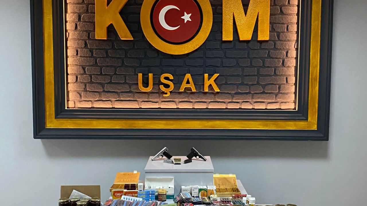 Uşak'ta KOM Şube Müdürlüğü ekiplerince 2 farklı adrese yapılan operasyonda 893 cinsel içerikli ürün, 283 bitkisel macun, 2 tabanca ele geçirilirken 3 kişi de ekiplerce gözaltına alındı. Uşak İl Emniyet Müdürlüğü'ne bağlı Kaçakçılık ve Organize Suçlarla Mücadele Şube Müdürlüğü ekipleri 2 farklı adrese düzenledikleri operasyonda 893 cinsel içerikli ürün, 283 bitkisel macun, 2 tabanca ele geçirdi. Ele geçirilen ürünlerle birlikte 3 kişi de ekiplerce gözaltına alındı. (HABER MERKEZİ)