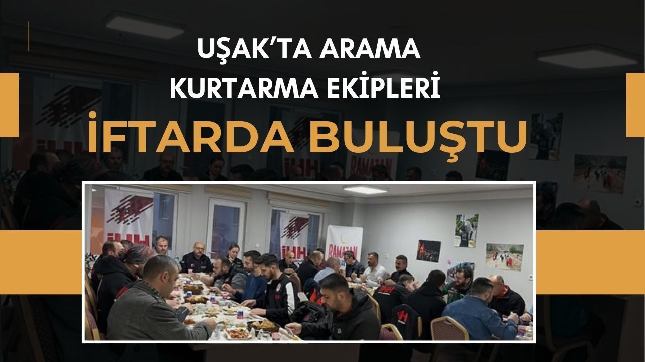Uşak AFAD İHH Arama Kurtarma Uşak ekibi tarafından düzenlenen iftar programında, kentte faaliyet gösteren arama kurtarma ekip liderleri bir araya geldi. Programa AFAD İl Müdürü Yasemin Bebek ve beraberindeki heyet de katıldı. Uşak’ta yürütülen arama kurtarma faaliyetlerinde görev alan ekip liderlerinin katılımıyla gerçekleştirilen programda, ekipler aynı sofrada buluştu. İftar programı, katılımcıların bir araya gelmesine ve karşılıklı görüş alışverişinde bulunmasına imkan sağladı.