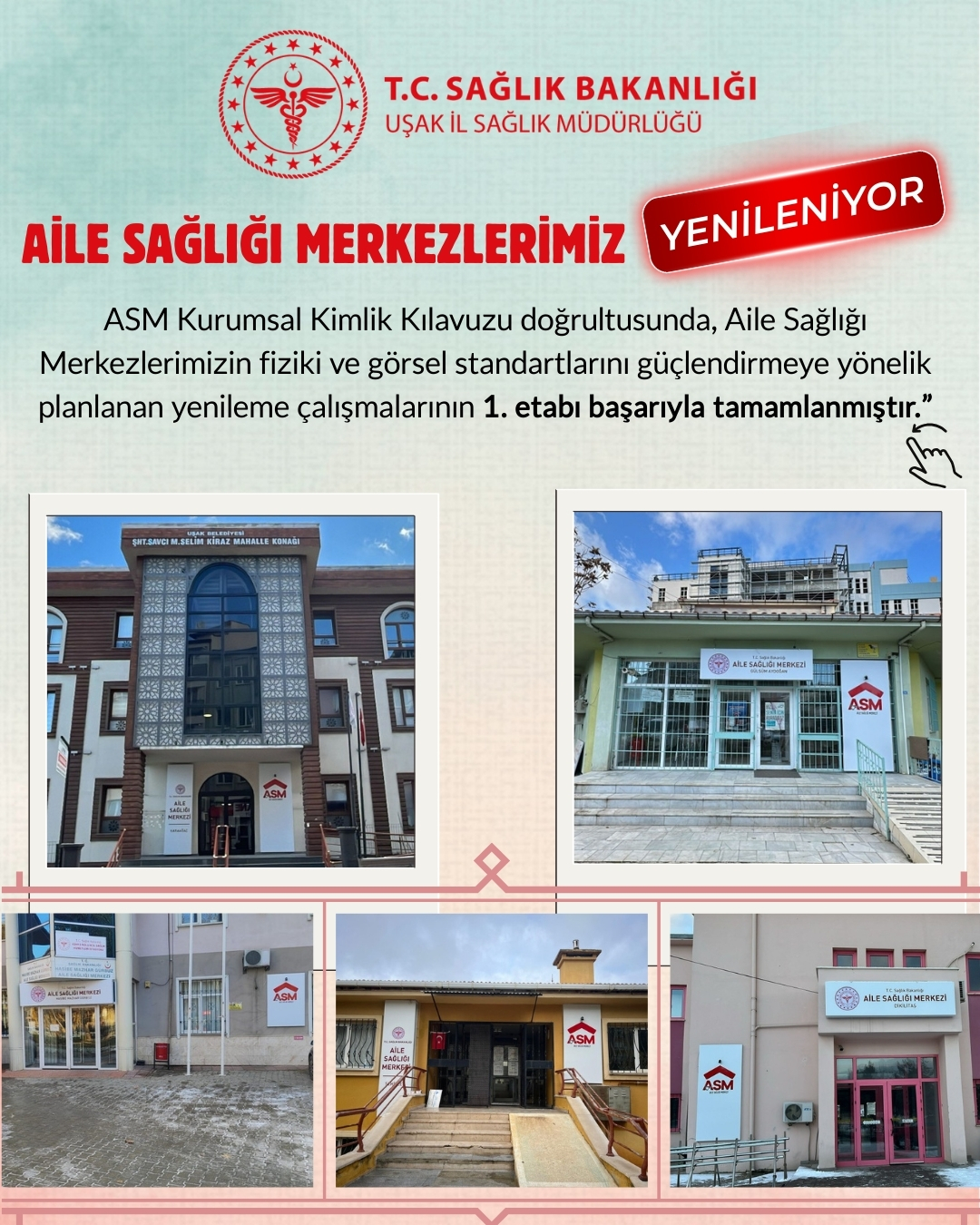 Yetkililerden alınan bilgilere göre, ilk etabın ardından ihtiyaç ve önceliklere göre yeni yenileme etapları planlanıyor. Hedef; Uşak genelindeki Aile Sağlığı Merkezlerini erişilebilir, sürdürülebilir ve günümüz sağlık standartlarına uygun yapılar haline getirmek.
