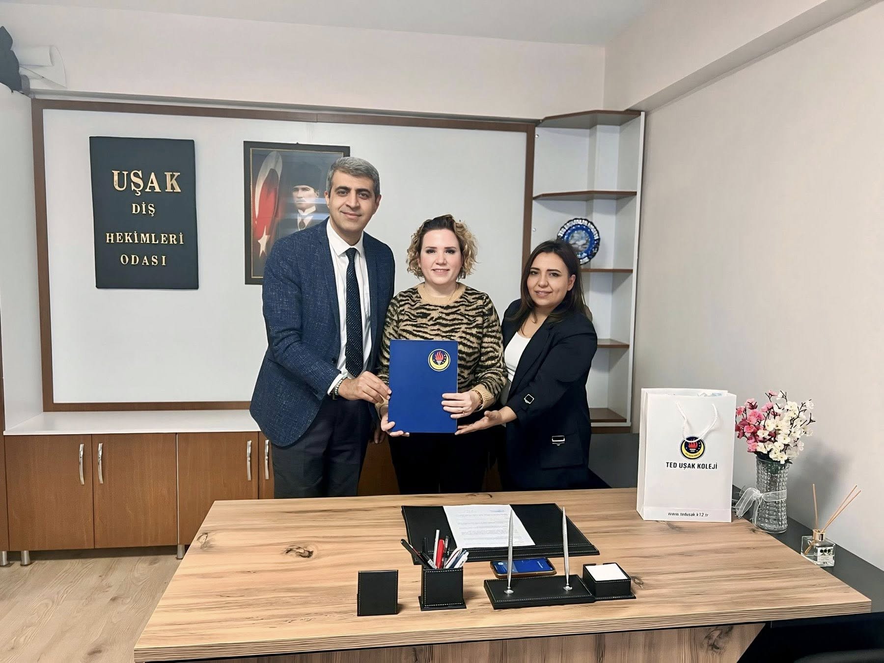 Uşak Diş Hekimleri Odası ile TED Uşak Koleji arasında kurumsal akademik iş birliği ve indirim protokolü imzalandı. Uşak’ta eğitim ve meslek kuruluşlarını buluşturan protokol, karşılıklı dayanışmayı güçlendiren önemli bir adım olarak değerlendirildi. Yapılan anlaşma ile Uşak Diş Hekimleri Odası üyeleri ve aileleri, TED Uşak Koleji’nin sunduğu eğitim hizmetlerinden belirlenen oranlarda indirimli olarak faydalanabilecek. Aynı zamanda taraflar arasında eğitim odaklı ortak çalışmaların da önü açılmış oldu.