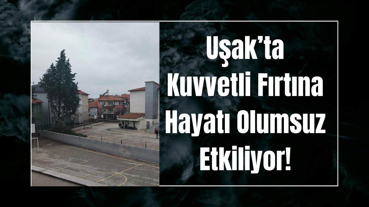 Uşak’ta sabah erken saatlerden itibaren etkili olan kuvvetli rüzgar, kent genelinde günlük yaşamı olumsuz etkiledi. Özellikle şehir merkezinde hissedilen fırtına, kısa sürede etkisini artırarak çeşitli hasarlara yol açtı. Fırtına nedeniyle Uşak Atatürk Ortaokulu bahçesinde bir ağacın devrildiği öğrenildi. Olayda herhangi bir yaralanma yaşanmaması olası bir tehlikenin önüne geçerken, okul çevresinde güvenlik önlemleri alındı.