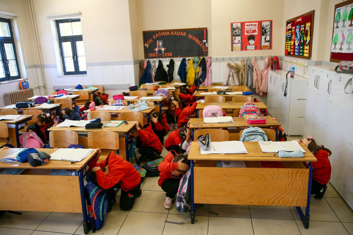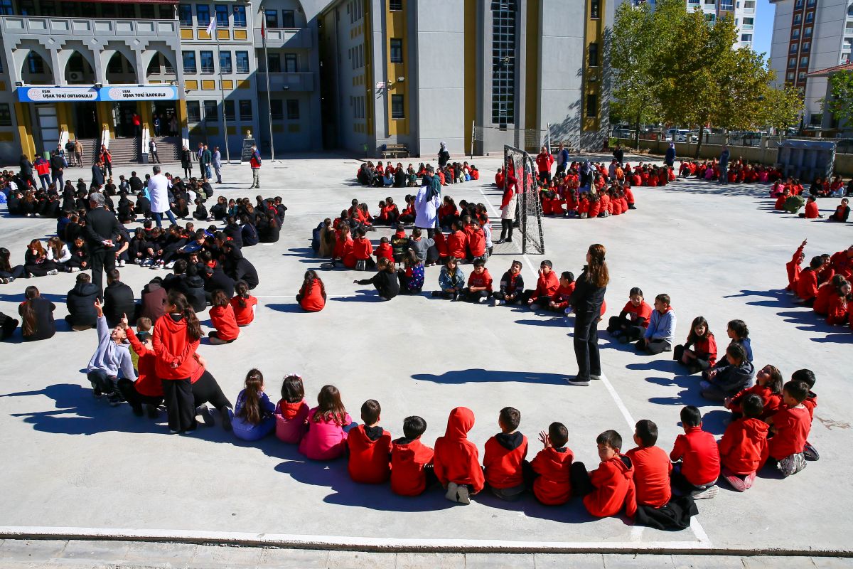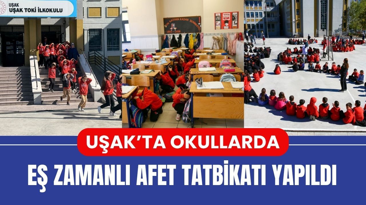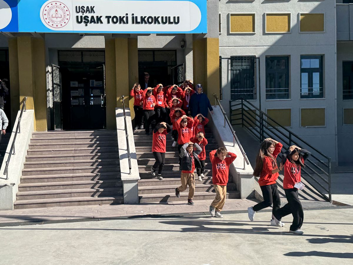 Milli Eğitim Bakanlığınca “Afetler ve Dayanıklılık Ayı” etkinlikleri kapsamında, Uşak’taki tüm okullarda eş zamanlı olarak afet tatbikatı düzenlendi. Saat 11.00’de çalan sirenle birlikte öğrenciler sıralarının yanında “çök-kapan-tutun” hareketini uyguladı.
