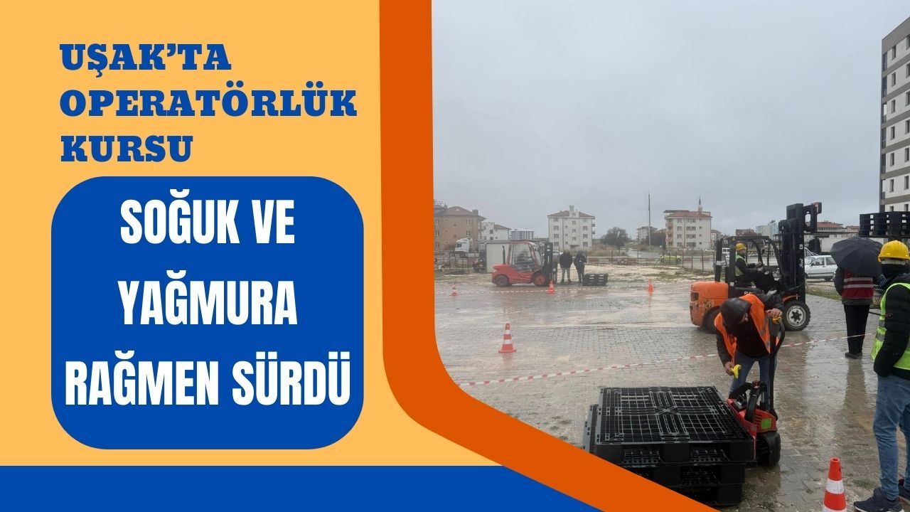 Uşak’ta düzenlenen iş makineleri operatörlük kursu, pazar günü etkili olan yağmur ve soğuk havaya rağmen ara verilmeden sürdürüldü. Zorlu hava koşullarına aldırış etmeyen kursiyerler, eğitim sahasında çalışmalarına devam etti. Yoğun katılımla gerçekleşen kursta operatör adayları, hem teorik bilgilerini pekiştirdi hem de uygulamalı eğitimlerde becerilerini sergileme imkanı buldu. Soğuk ve yağışlı havaya rağmen kursiyerlerin motivasyonunun yüksek olması dikkat çekti.