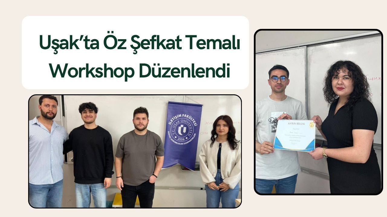 Uşak Üniversitesi Halkla İlişkiler ve Reklamcılık Bölümü öğrencileri Emirhan Şen, Meltem Demirel ve İbrahim Çağrı Eryiğit tarafından organize edilen “Öz Şefkat Temalı Workshop”, Uşak’ta gerçekleştirildi. Psikolog Damla Dağlıgil’in yürütücülüğünde etkinlik, kişisel gelişime ilgi duyan herkese açık olacak. etkinlik, bireylerin öz şefkat farkındalığını artırmayı hedefliyor.