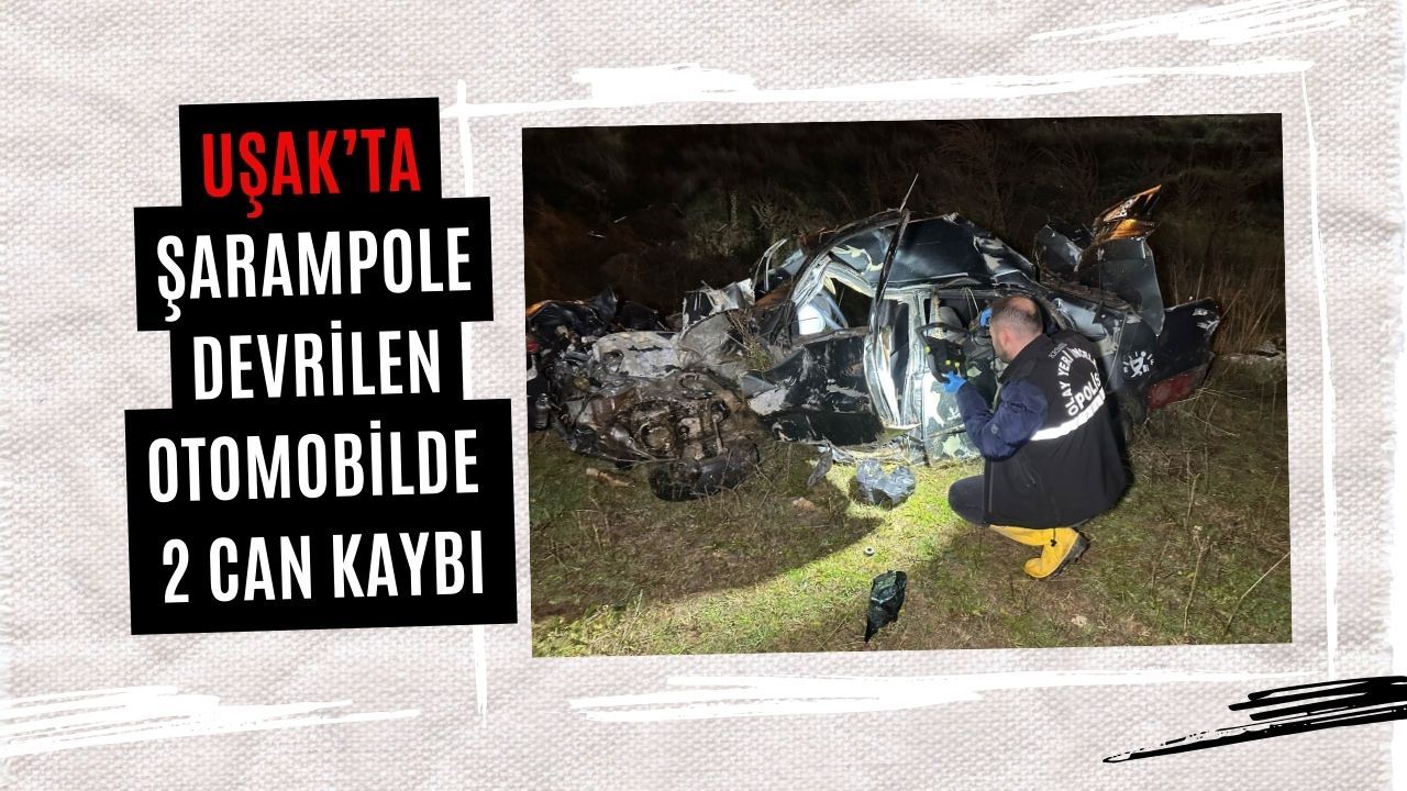 Uşak’ta İzmir-Uşak kara yolunda meydana gelen trafik kazasında iki kişi hayatını kaybetti, bir kişi yaralandı. Huzurpark mevkisinde ilerleyen Ümit Güneş’in (25) kullandığı 65 EV 148 plakalı otomobil, sürücüsünün direksiyon hâkimiyetini kaybetmesiyle önce refüje çarptı, ardından yan yola savrularak şarampole devrildi.
