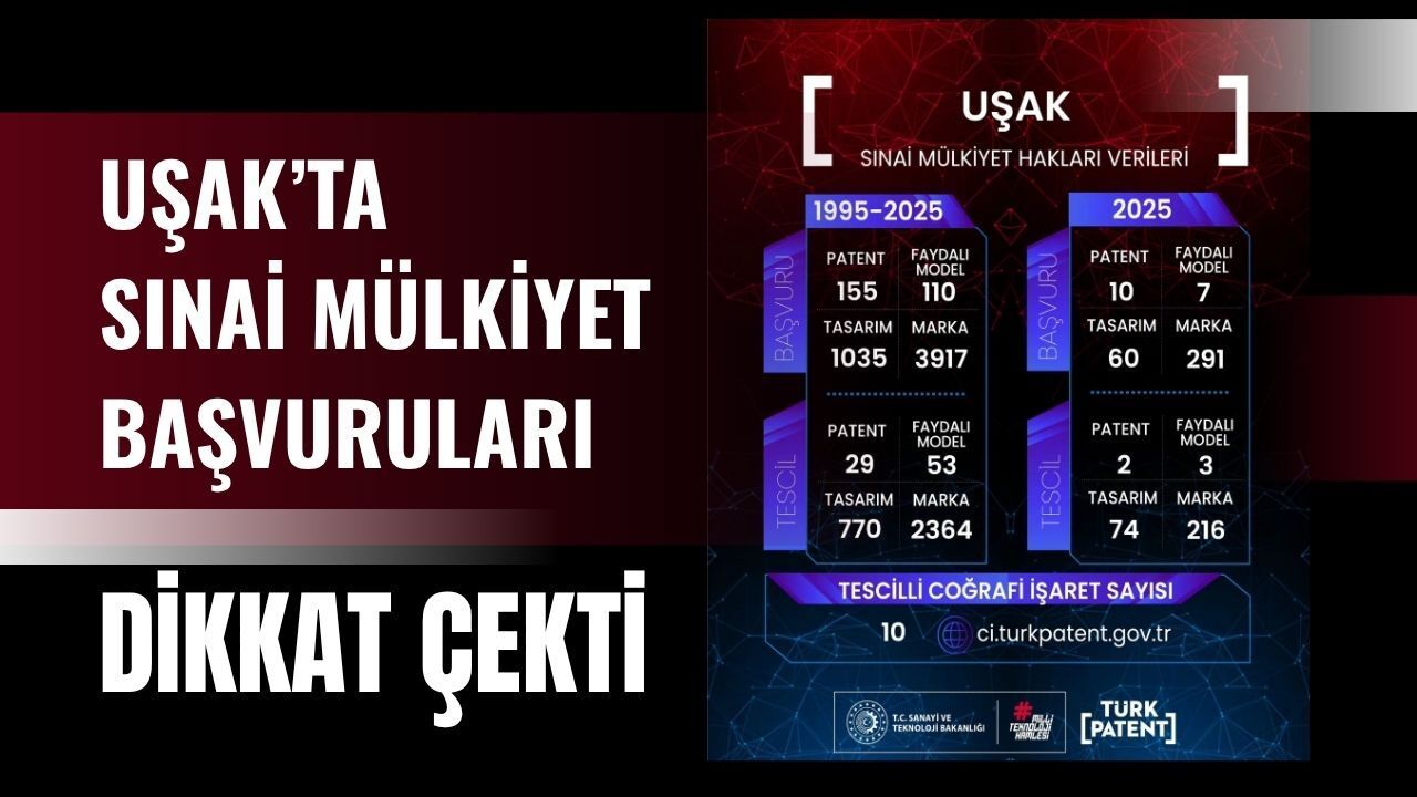 2025 yılı verileri de Uşak’ın sınai mülkiyet alanındaki yükselişini gözler önüne serdi. Yıl içinde 291 marka, 10 patent, 7 faydalı model ve 60 tasarım başvurusu gerçekleştirildi. Aynı dönemde toplam 305 sınai mülkiyet hakkı tescil edildi. Bu verilerin Uşak’ın inovasyon ve markalaşma potansiyelinin her geçen gün güçlendiğini gösterdiğini ifade edilirken, özellikle sanayi ve üretim kapasitesiyle öne çıkan şehirde, katma değerli üretim ve fikri mülkiyet bilincinin artmasının ekonomik gelişime önemli katkı sağladığı belirtiliyor. Uşak’ta sınai mülkiyet ekosisteminin güçlenmesi, hem yerel üreticilerin rekabet gücünü artırıyor hem de kentin ulusal ve uluslararası pazarlarda daha görünür hale gelmesine zemin hazırlıyor.