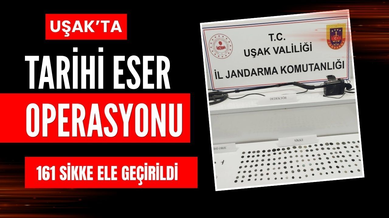 Uşak İl Jandarma Komutanlığı ekipleri, kaçakçılıkla mücadele kapsamında yürüttüğü çalışmalar doğrultusunda önemli bir operasyona imza attı. Uşak Cumhuriyet Başsavcılığı koordinesinde gerçekleştirilen çalışmada, Merkez ilçeye bağlı Işık Mahallesi’nde ikamet eden F.K. isimli şüphelinin adresi takibe alındı. Şüphelinin evinde yapılan adli aramada, farklı dönemlere ait olduğu değerlendirilen toplam 161 adet sikke ile 7 adet tarihi obje ele geçirildi. Aramada ayrıca 1 adet dedektör ve bu cihaza ait ekipmanlar da bulundu.