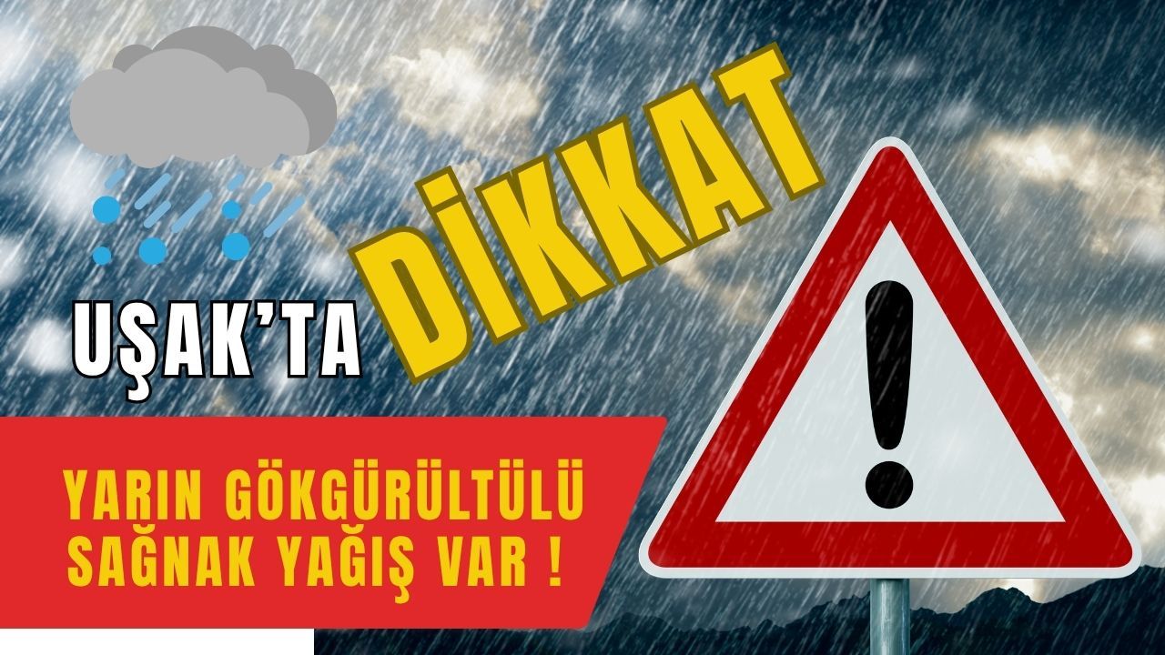 Meteoroloji Genel Müdürlüğü’nün yayımladığı son tahminlere göre Uşak, yarın sabah saatlerinden itibaren kuvvetli sağanak yağışın etkisine girecek. Gün boyu aralıklarla sürecek yağışlara gök gürültüsü de eşlik edecek. Uzmanlar, ani bastıran yağışların özellikle öğleden sonra kent merkezinde ve yüksek kesimlerde etkili olabileceğini vurguluyor.