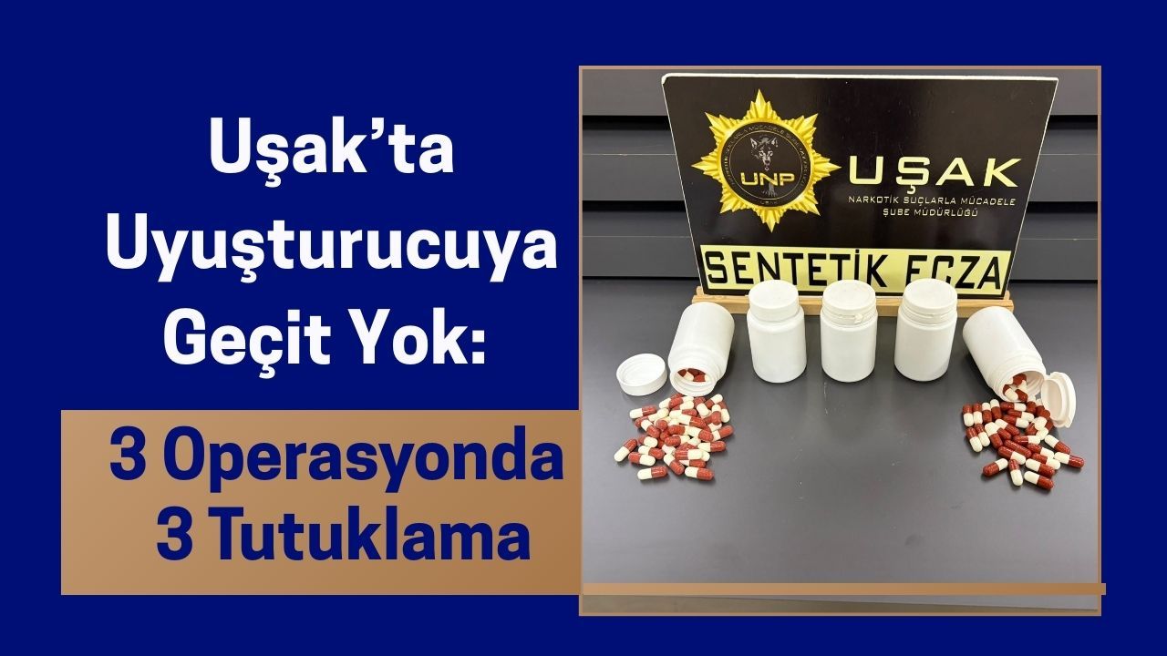 Uşak’ta yasaklı madde ticaretine yönelik yürütülen kararlı mücadele kapsamında, Uşak İl Emniyet Müdürlüğü ekipleri tarafından il merkezinde art arda operasyonlar gerçekleştirildi. Uşak Valiliği koordinasyonunda yürütülen çalışmalar, uyuşturucu ile mücadelede sahadaki etkinliği bir kez daha ortaya koydu. Kaçakçılık ve Organize Suçlarla Mücadele Şube Müdürlüğü ekiplerince yapılan saha çalışmaları neticesinde, kent merkezinde üç ayrı operasyon düzenlendi. Adli mercilerden alınan arama kararları doğrultusunda şüphelilerin üzerlerinde ve eşyalarında yapılan kontrollerde, yüksek miktarda sentetik yasaklı madde ve sentetik ecza ele geçirildi.