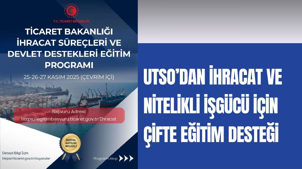 Uşak Ticaret ve Sanayi Odası (UTSO), kent ekonomisinin sürdürülebilir kalkınmasına katkı sunacak iki önemli eğitim programını aynı dönemde hayata geçiriyor. Ticaret Bakanlığı iş birliğiyle düzenlenen “İhracat Süreçleri ve Devlet Destekleri Eğitim Programı” ile Nitelikli İşgücü Yetiştirme Programı (NİYEP), kasım ayı sonunda Uşak iş dünyasının gündeminde olacak.