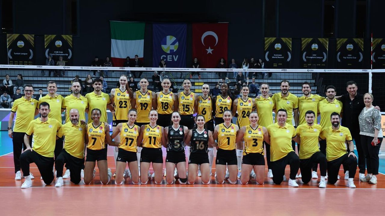 2026 CEV Zeren Group Şampiyonlar Ligi A Grubu’nda mücadele eden VakıfBank, Avrupa arenasında bir kez daha gücünü ortaya koydu. Temsilcimiz, grubun son haftasında sahasında İtalya temsilcisi Savino Del Bene Scandicci ile karşı karşıya geldi.VakıfBank Spor Sarayı’nda oynanan ve büyük çekişmeye sahne olan mücadelede sarı-siyahlılar, ilk iki seti kaybetmesine rağmen oyundan kopmadı. Taraftar desteğini de arkasına alan VakıfBank, maçı 3-2 kazanarak grubu 17 puanla namağlup tamamladı.Beş sete uzayan karşılaşmada setler 24-26, 23-25, 25-20, 28-26 ve 15-12 sonuçlandı. Toplam 128 dakika süren mücadelede VakıfBank, kritik anlarda gösterdiği direnç ve takım oyunu ile galibiyete ulaştı.