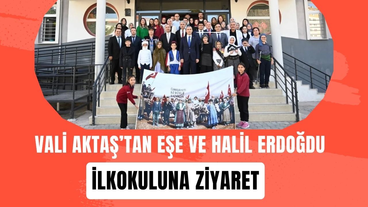 Uşak Valisi Dr. Naci Aktaş, İl Milli Eğitim Müdürü Halil Yücel ile birlikte Eşe ve Halil Erdoğdu İlkokulunu ziyaret ederek öğrenciler ve öğretmenlerle bir araya geldi. Ziyarette öğrencilerin hazırladığı gösteriler büyük beğeni toplarken, okulda keyifli ve anlamlı anlar yaşandı. Vali Aktaş, sınıfları gezerek öğrencilerin derslerine katıldı, onlarla sohbet etti ve öğrenme süreçlerini yakından izledi. Öğrenciler tarafından sahnelenen “Nasreddin Hoca Fıkra Canlandırma Yarışması” ile “Cumhuriyeti Biz Böyle Kazandık” temalı tablo, katılımcılardan tam not aldı. Program sonunda Vali Aktaş, öğrencileri tek tek tebrik ederek başarılarının devamını diledi.