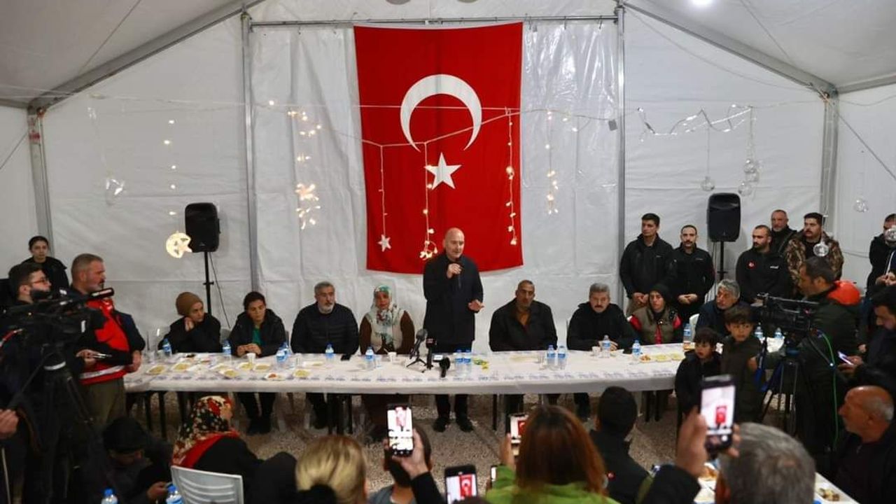 Ramazanın gelmesi ile birlikte iftar sofraları kurulmaya devam ediyor. ‘’Asrın Felaketi’’ olarak nitelendirilen ve 11 ili etkileyen 6 Şubat depremleri nedeniyle binlerce insan hayatını kaybetmişti. Deprem bölgesinde iftar buruk karşılandı. Depremden etkilenen vatandaşlar Hatay Kırıkhan ‘da, iftarda Uşak Valisi Dr Turan Ergün ve İç işleri Bakanı Süleyman Soylu ile bir araya geldi.