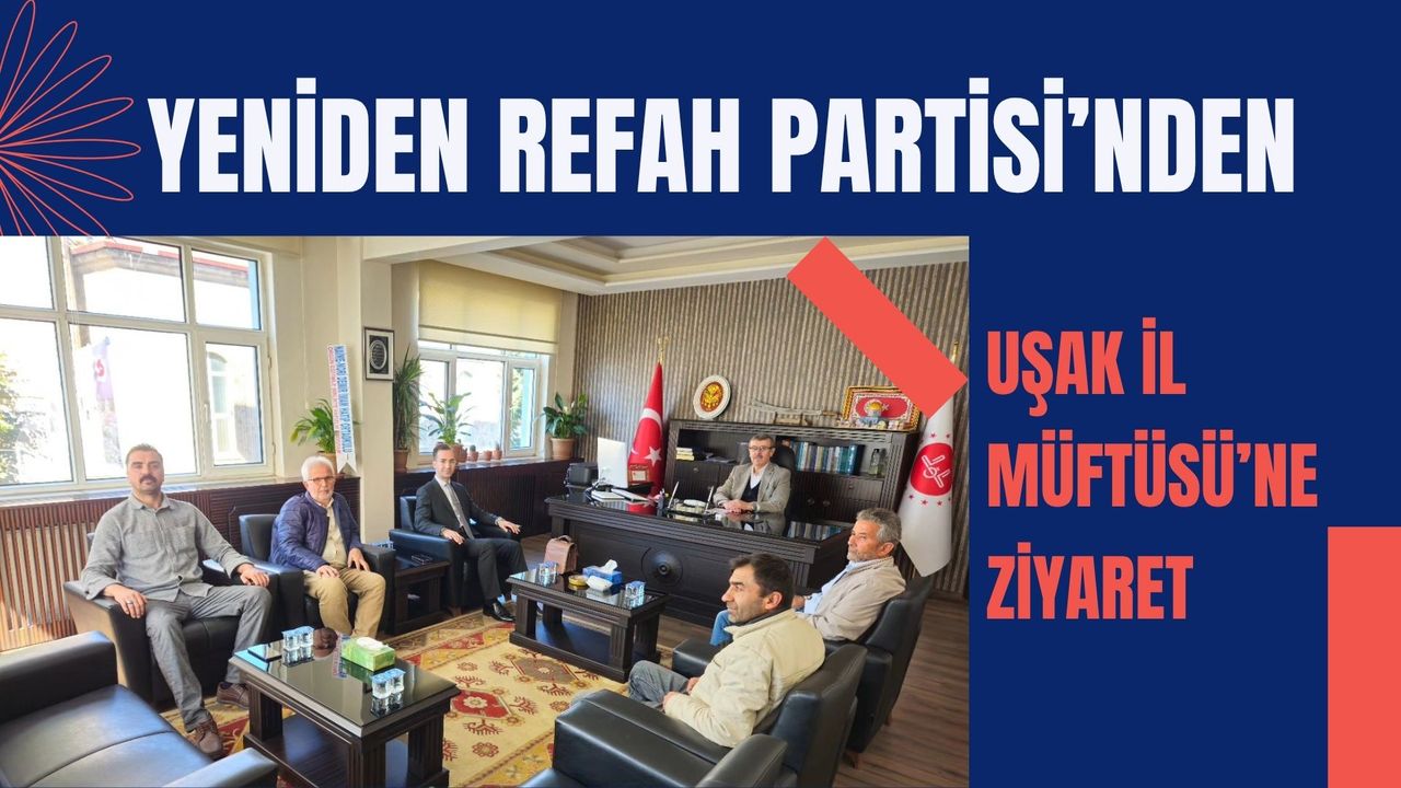 Yeniden Refah Partisi Uşak İl Başkanı Av. Rüştü Han Serçeoğlu ve yönetim kurulu üyeleri, Uşak İl Müftüsü Mesut Harmancı’yı makamında ziyaret etti. Ziyarette, İl Başkanı Serçeoğlu ve beraberindeki heyet, Müftü Harmancı’ya yeni görevinde başarılar dileyerek hayırlı olsun temennilerini iletti. Uşak İl Müftüsü Mesut Harmancı, ziyaretten duyduğu memnuniyeti dile getirerek şu ifadeleri kullandı: