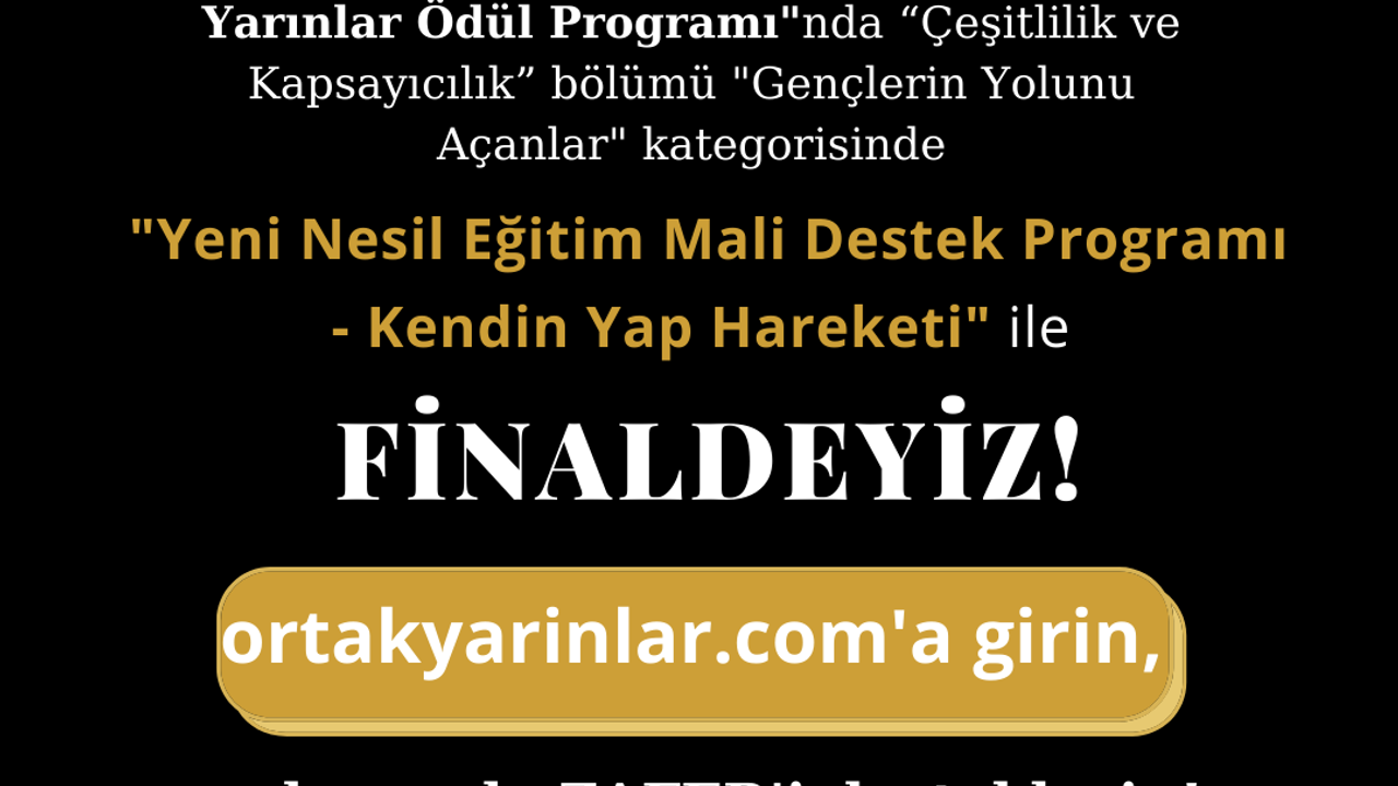 Çocuklarımıza verebileceğimiz en iyi şey arazi, ev veya dolgun bir banka hesabı değil, onlara verebileceğimiz en iyi şey eğitimdir. Çocuklarımıza güzel bir dünya bırakmak kadar o dünyayı daha da güzelleştirecek donanımlı çocuklar yetiştirmek gerekir düşüncesiyle kurgulanarak hayata geçirilen "Yeni Nesil Eğitim Mali Destek Programı - Kendin Yap Hareketi" ile 34 ilçede; 42 sabit ve 6 mobil atölyede robotik kodlamadan endüstriyel tasarıma, dijital stüdyodan geri dönüşüme 34 farklı konseptte 133 alt istasyon oluşturuldu.